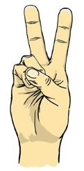 Los dedos levantados representan las orejas del lobo dispuesto a escuchar y el dedo pulgar protegiendo a los otros dedos indica que el lobato ayuda a los demás.
